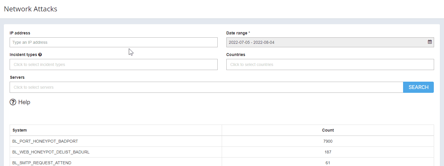 The Network Attacks tab is where you can take a deep dive. Thanks to our unified dashboard, here you will see each attack that happened on all of your servers and all the modules that have been triggered by some type of malicious activity.